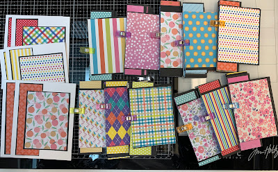 As always, using my paper scraps is at the top of the creative part of my mind. I watched a YouTube video by Jenny Card Designs and was inspired to make a ton of cards (well, 72) from the scraps in my basket. Here's a photo of the work in progress. At the left of the photo, 3 sets of the "finished" cards (I may still add sentiments and so forth). Then, there are 11 more bundles of 6 cards each to the right of those finished cards. Now, I just have to glue all the parts together, select card backings, and assemble all of them. Raining off and on for the entire day, so I'll have plenty of crafting time...and I'll need it!